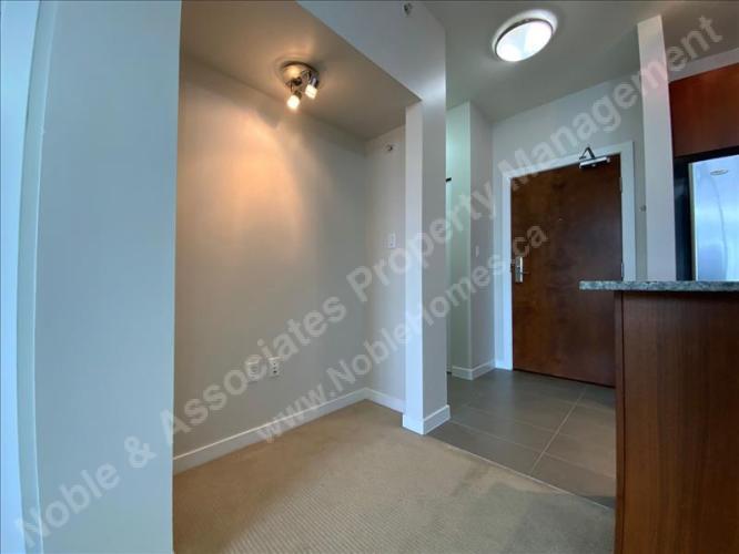 1 Bed 1 Bath Unit at MacPherson Walk. 4XX-5885 Irmin St, Burnaby Very convenient location, walk to Royal Oak skytrain station and just minutes to Metrotown Mall. This 614sf, 1 bedroom, 1 bathroom unit has a functional rectangular living-dining area which maximizes the use of space. Kitchen comes with modern wood veneer cabinets, serving counter with breakfast bar, stainless steel appliances and granite countertops. Rent includes one parking stall and one storage locker. Available on Dec 16, 2025! No Pet, No Smoking, ONE Year LEASE required. Credit, employment and current landlord reference check required. Approved tenant is required to pay utility fees / move-in / move-out fees if applicable. Please visit this link for an online virtual presentation or schedule a viewing of the rental unit: https://www.noblehomes.ca/en/listing_detail/52615231-ff10-ec11-b6e6-000d3a132892 You can also send an email to Rental@Noblehomes.ca or TEXT your full name and address of interested property to 778-800-1997. Thank you! Disclaimer: The above information, while deemed to be correct, is not guaranteed. Asking rent and availability are subject to change. Noble & Associates Property Management provides professional property management services on behalf of the owner of this property. Prospective tenants do not need to pay any fees for renting this property.
